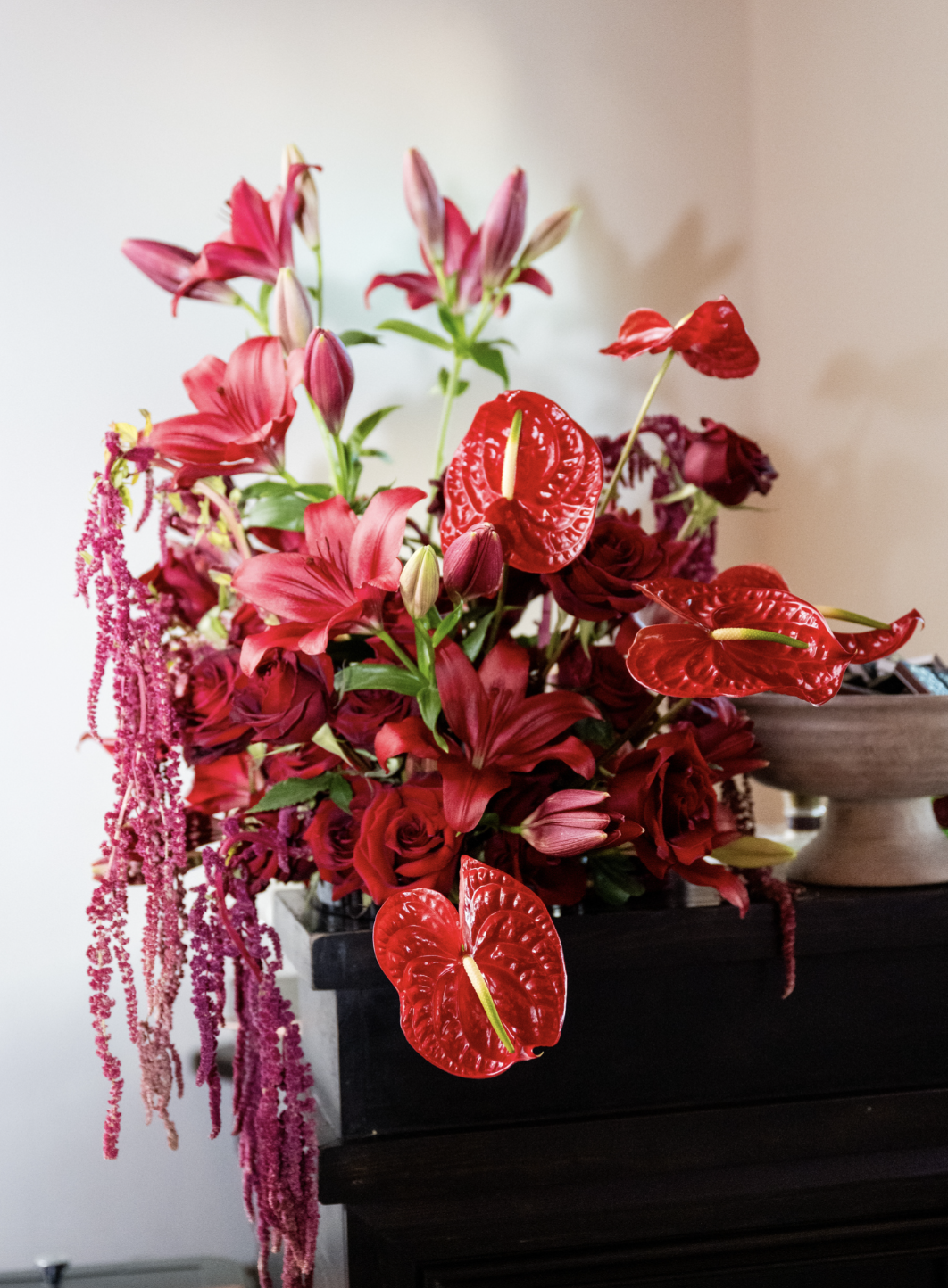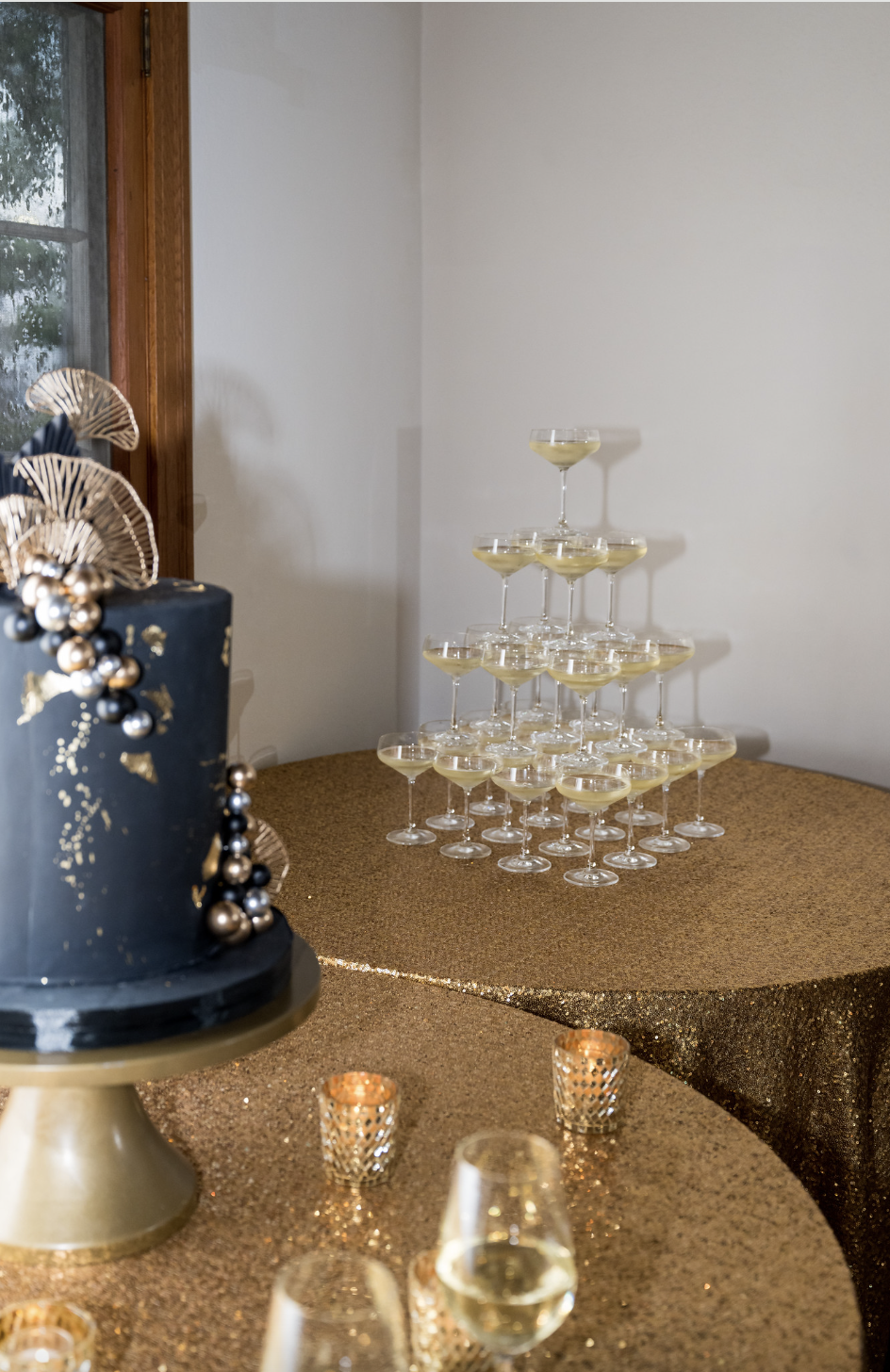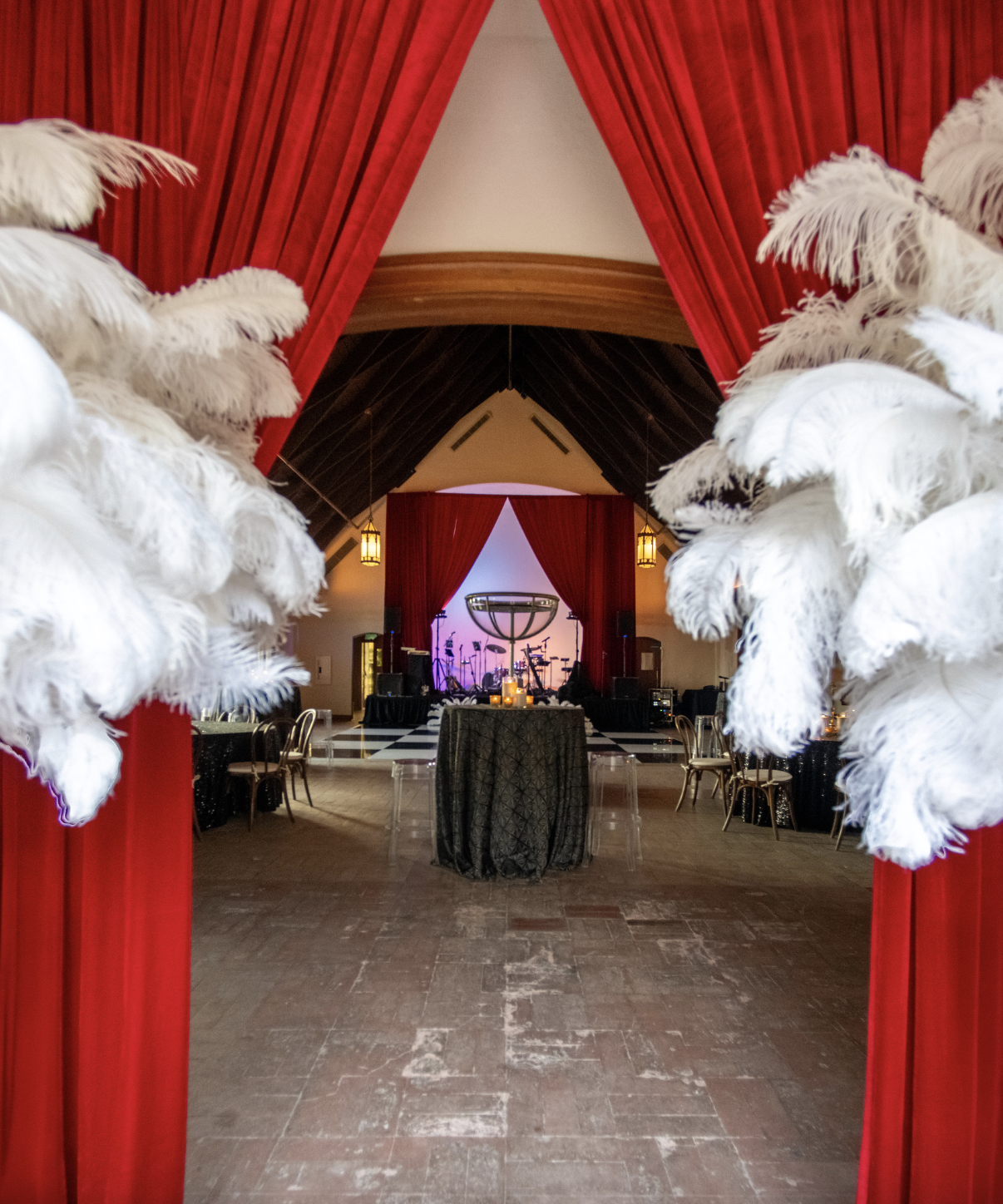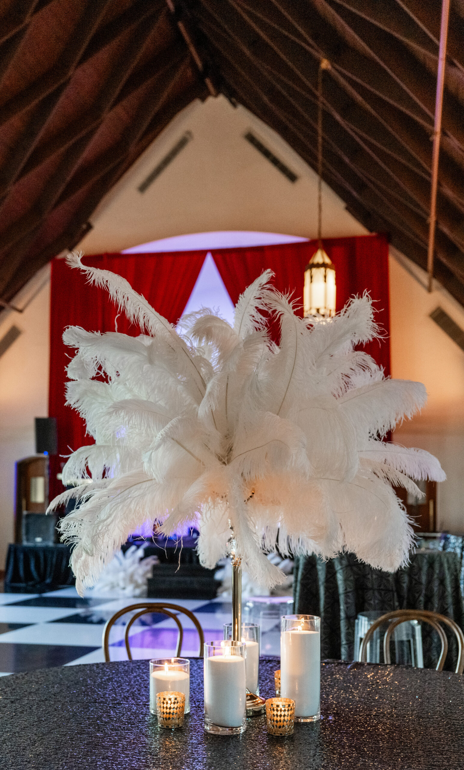 A Gatsby theme fit Bjorn perfectly because he loves a big, bold moment, so we ran with a red, black, gold, and white color palette that gave everything this dramatic, high energy vibe. Once that was set, everything was complemented with feathers, pearls, and sequins. Bouquets of Austin helped craft our vision!