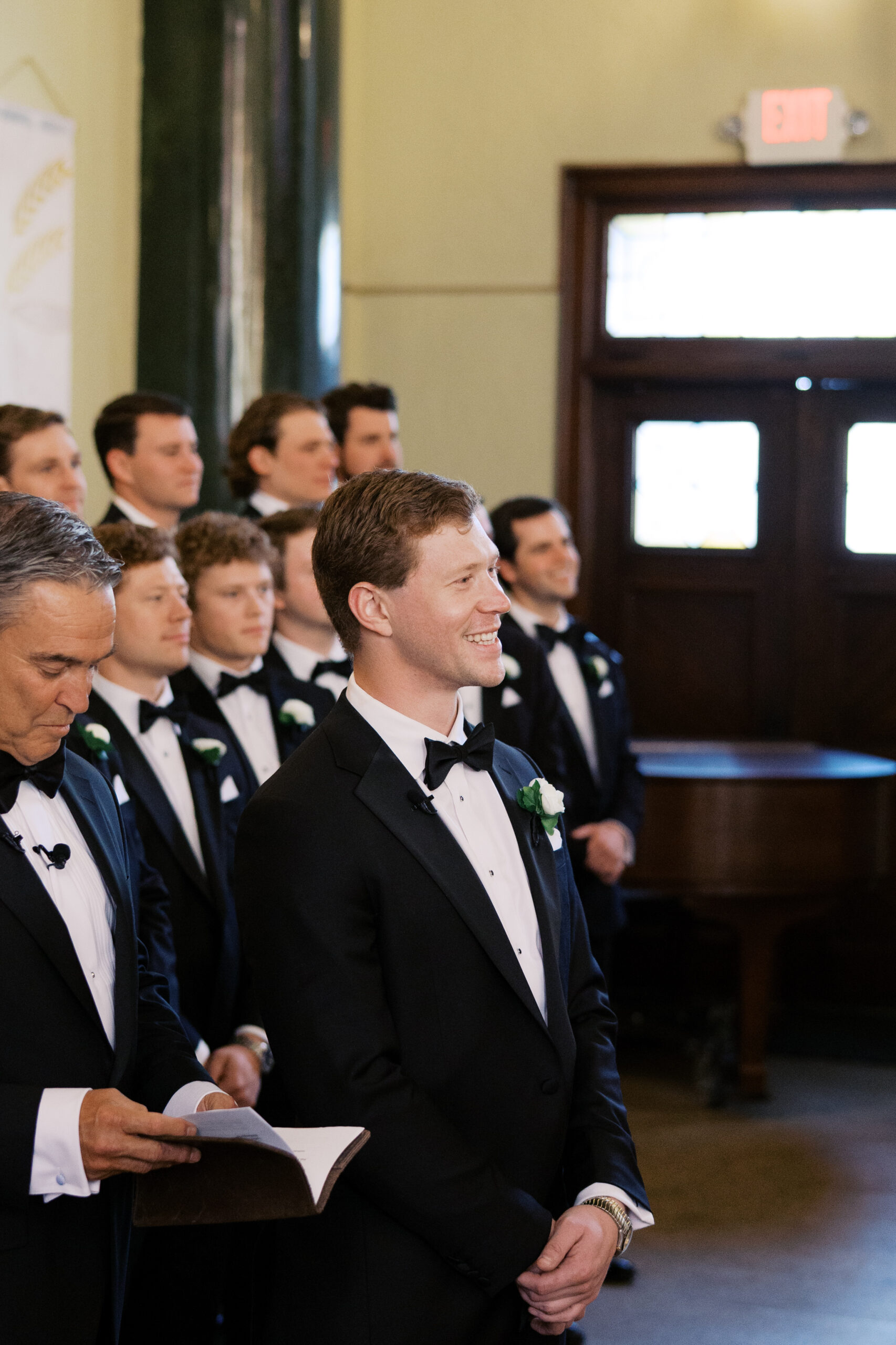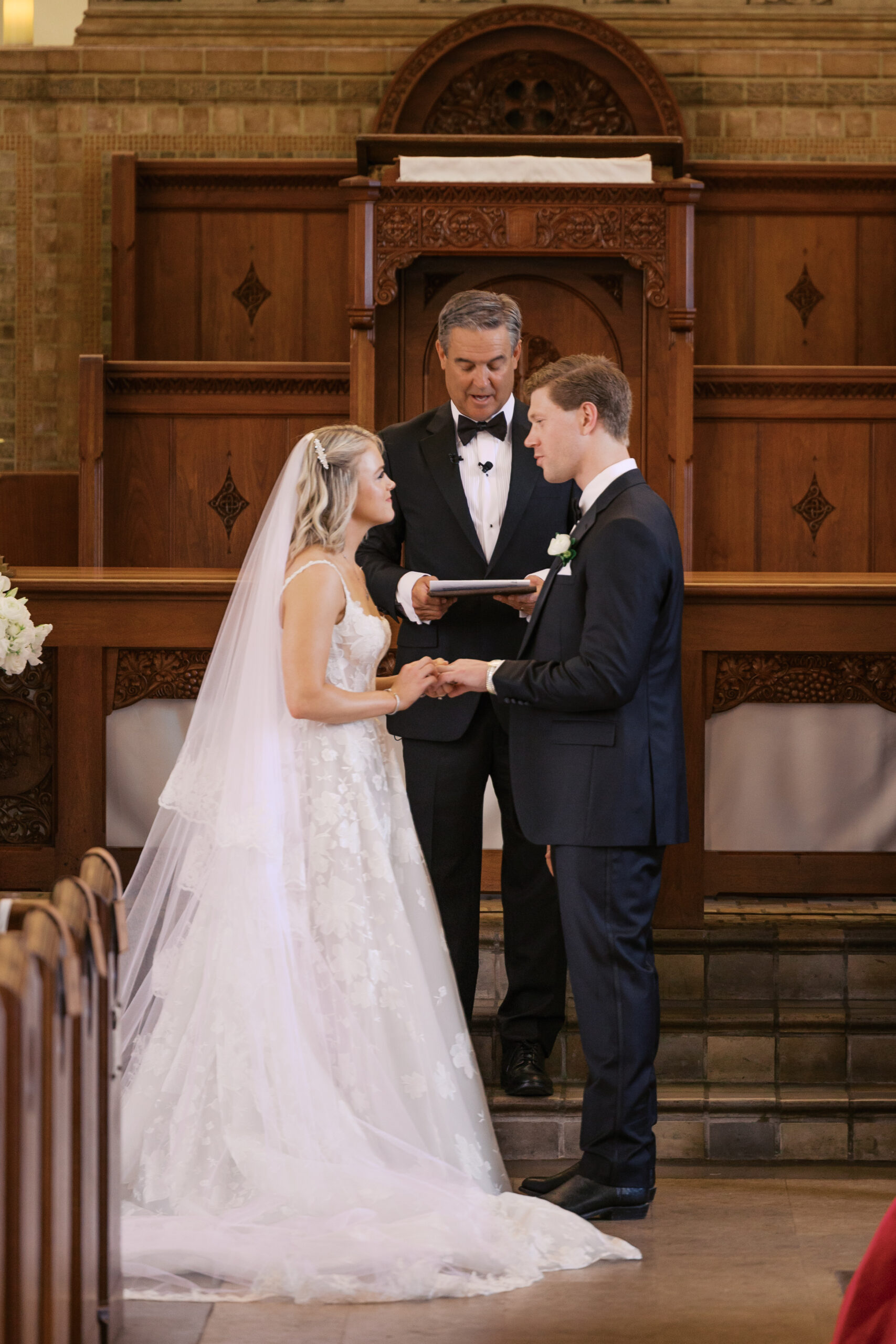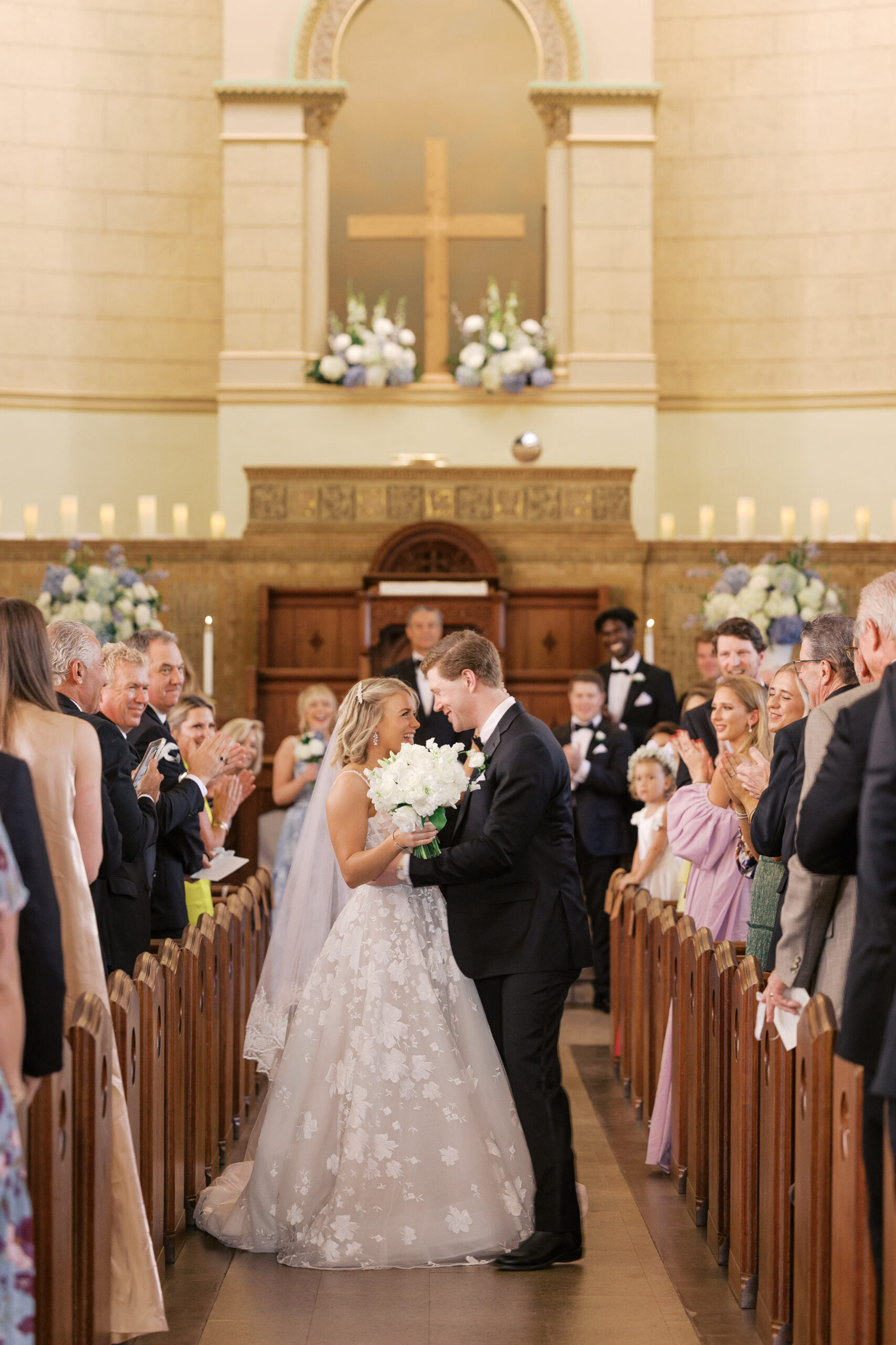 Brooke and Brooks began their wedding day surrounded by their closest friends and family. The ladies were pampered by the talented team at Adore Beauty before slipping into matching pajama sets for some must-have photos. Once everyone was ready, the bridesmaids and groomsmen made their way separately to Central Christian Church, where Brooke and Brooks shared an emotional first look. This heartfelt moment led into a meaningful gift exchange and a private vow reading, memories they will cherish forever.