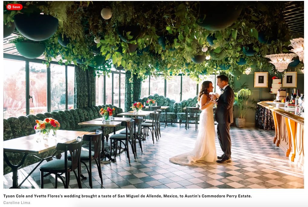 Check out our feature in Texas Monthly, “Everything a James Beard Award-Winning Chef Eats at His Wedding”. Tyson and Yvette’s wedding at Commodore Perry was incredibly bright, floral, and romantic, bringing the beautiful colors and accents of San Miguel to Austin! The burst of vibrant flowers lining the venue’s entrance and papel picado, a common Mexican paper decoration, added a traditional and personal touch to the wedding, bringing a gorgeous detail that was enjoyed by every guest. Each aspect of this perfect day was wonderful and we are so honored to be featured in Texas Monthly!